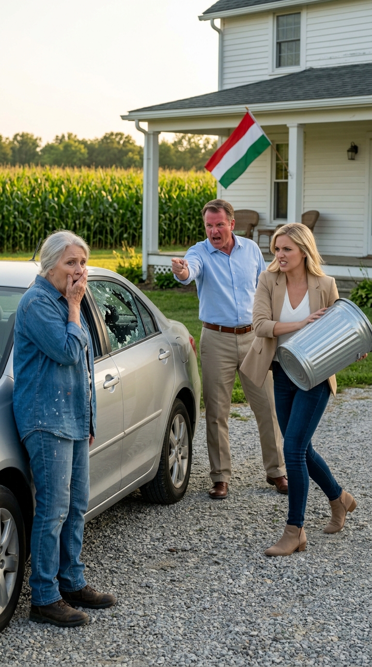 A zöld szemeteskuka olyan erővel csapódott a Ford Explorerem vezetőoldali ablakának, hogy az üveg csillogó